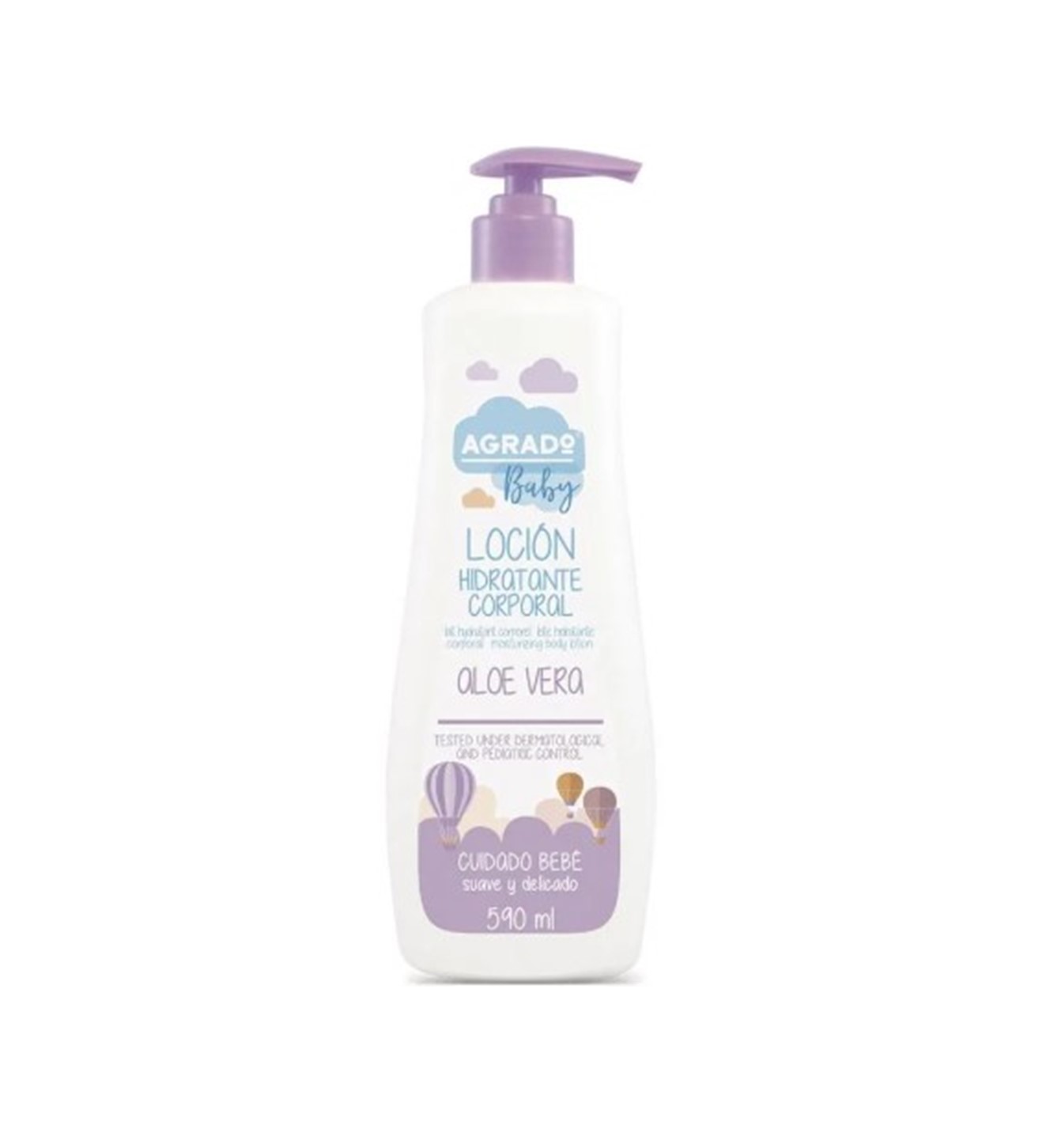 Nuestra Loción Hidratante Aloe Vera Agrado Baby nutre y protege la piel delicada de tu bebé, dejándola suave, hidratada y protegida. Formulada con aloe vera, esta loción calma la piel irritada y ayuda a fortalecer la barrera cutánea. ¡Perfecta para el cuidado diario de tu pequeño!